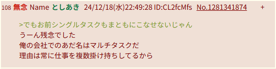 単なる多動症では?仮にマルチタスク(笑)としても何も結果を出せてないようですが…。