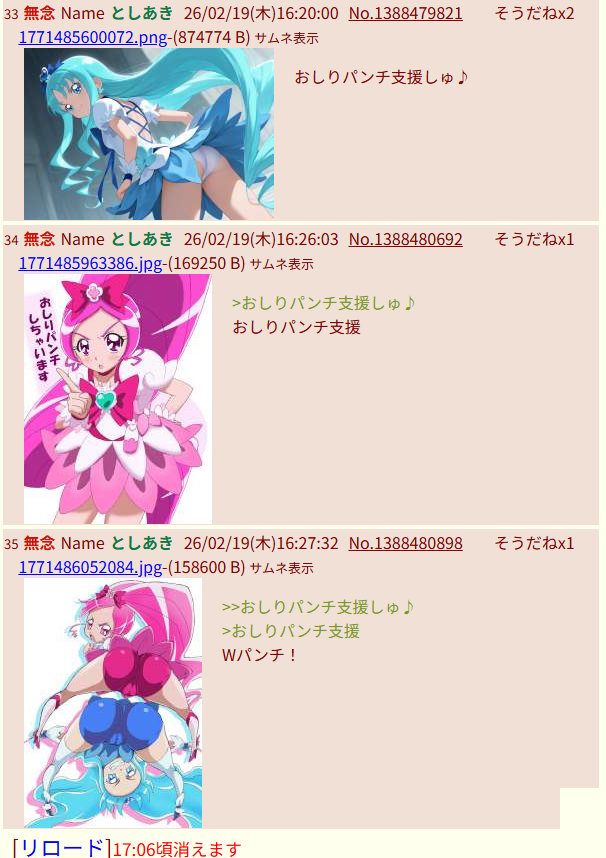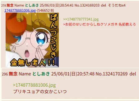 | メンバーってなに | 上述wiki潰しモード中、sage爺が漏らしたレス。意気揚々と吠えるプリキュアごっこの最中であったため、単に文字で表すには難しい面白さが感じられる。 |
