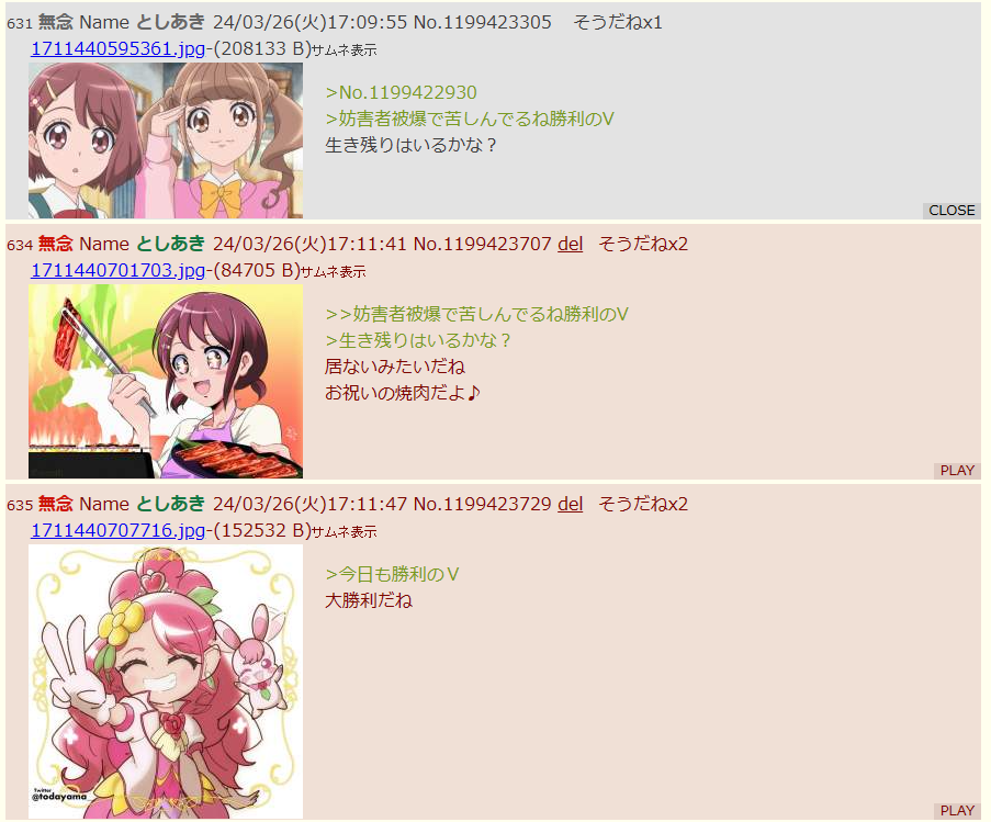 sage爺が突如「淫夢スレ」上でおっ始めたプリキュアごっこ。キュアグレースの画像を使っているがなりきり精度は低い。画面の向こうで喚かれても無論当方はノーダメージ。後述の「メンバーってなに」も参照。