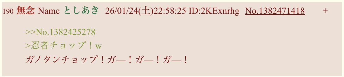 sage爺が2025年12月頃頻繁に行っている外人ごっこスレの中での発言。「咲良」の誤読だろう。シンプルに頭悪い。