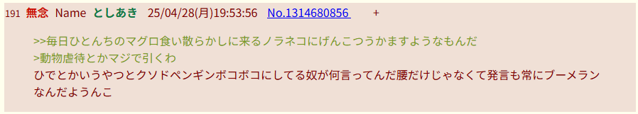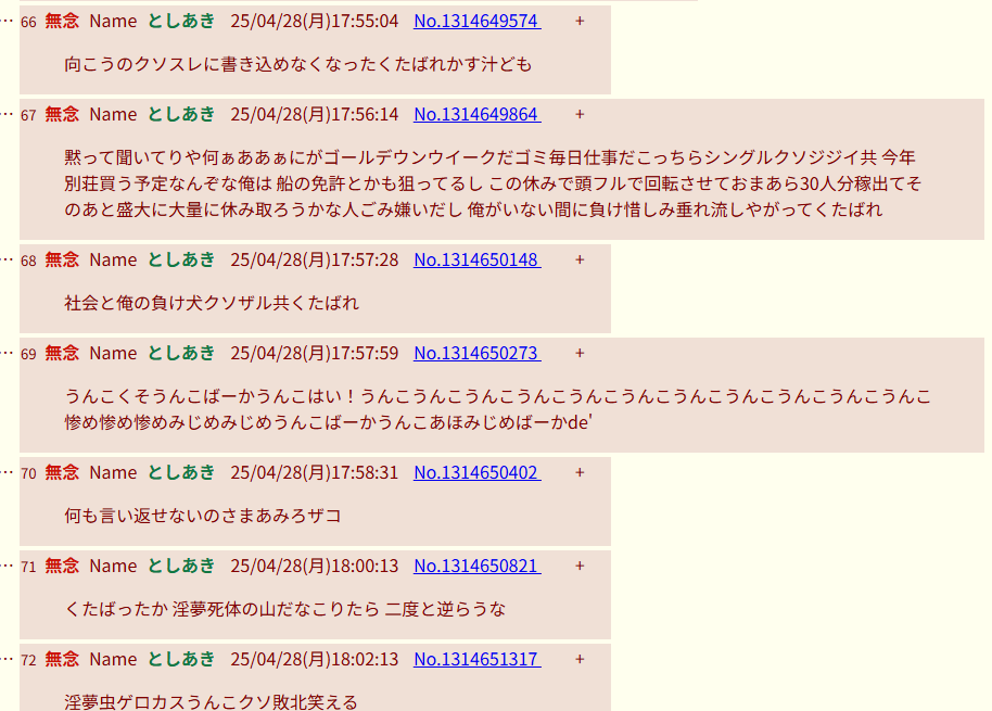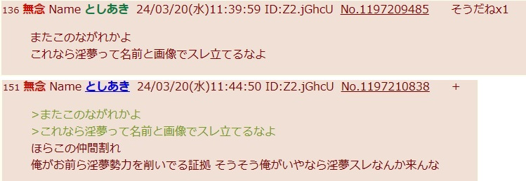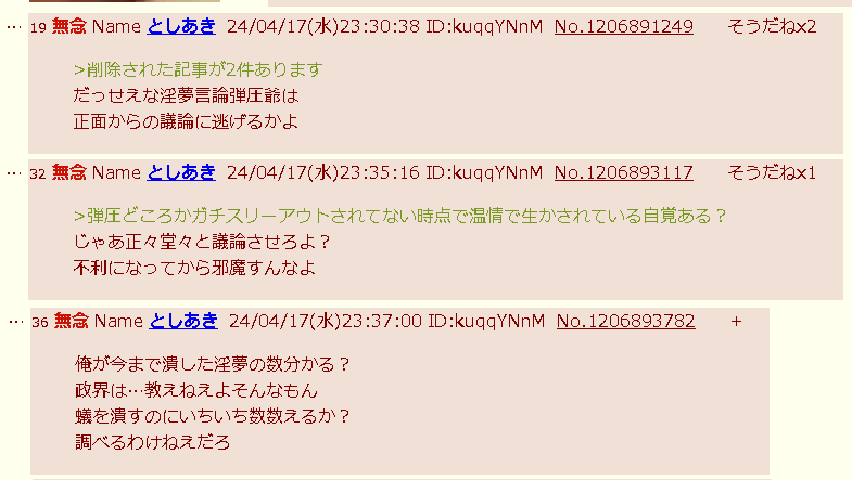 毎日毎日繰り返しているレス。何が面白いのかは余人には測りかねる。