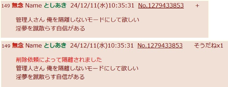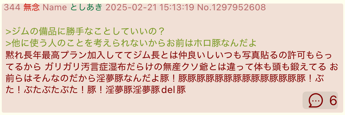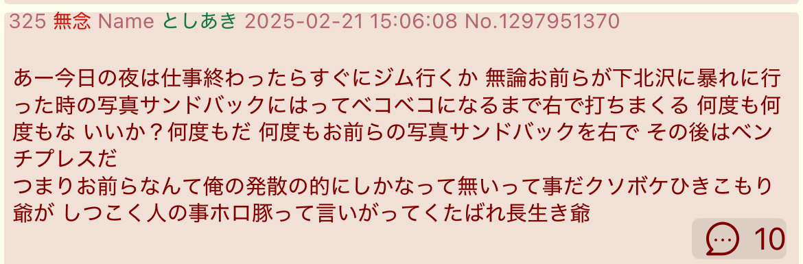 自身の淫夢スレでの行いについてのレス。頭がおかしい人間の行動である