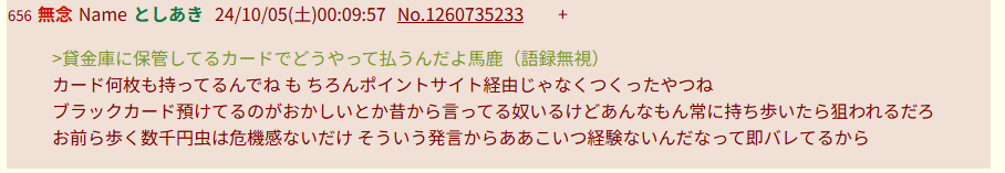 汚言の中のフレーズ。妙に具体的なため実体験の可能性は高い。