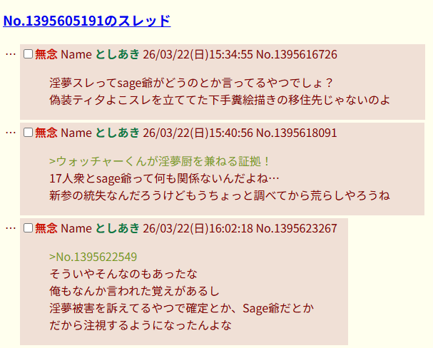 sage爺が言うところの「妨害者」への無根拠なレッテルのようであるが、発言の内容を見るにsage爺自身の属性を他人に擦り付け精神の安定を図るために発言しているようである。
