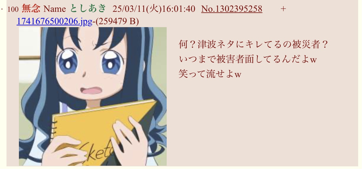 「おはえりか」スレで震災にまつわるクズ発言でイキっていた際の発言。