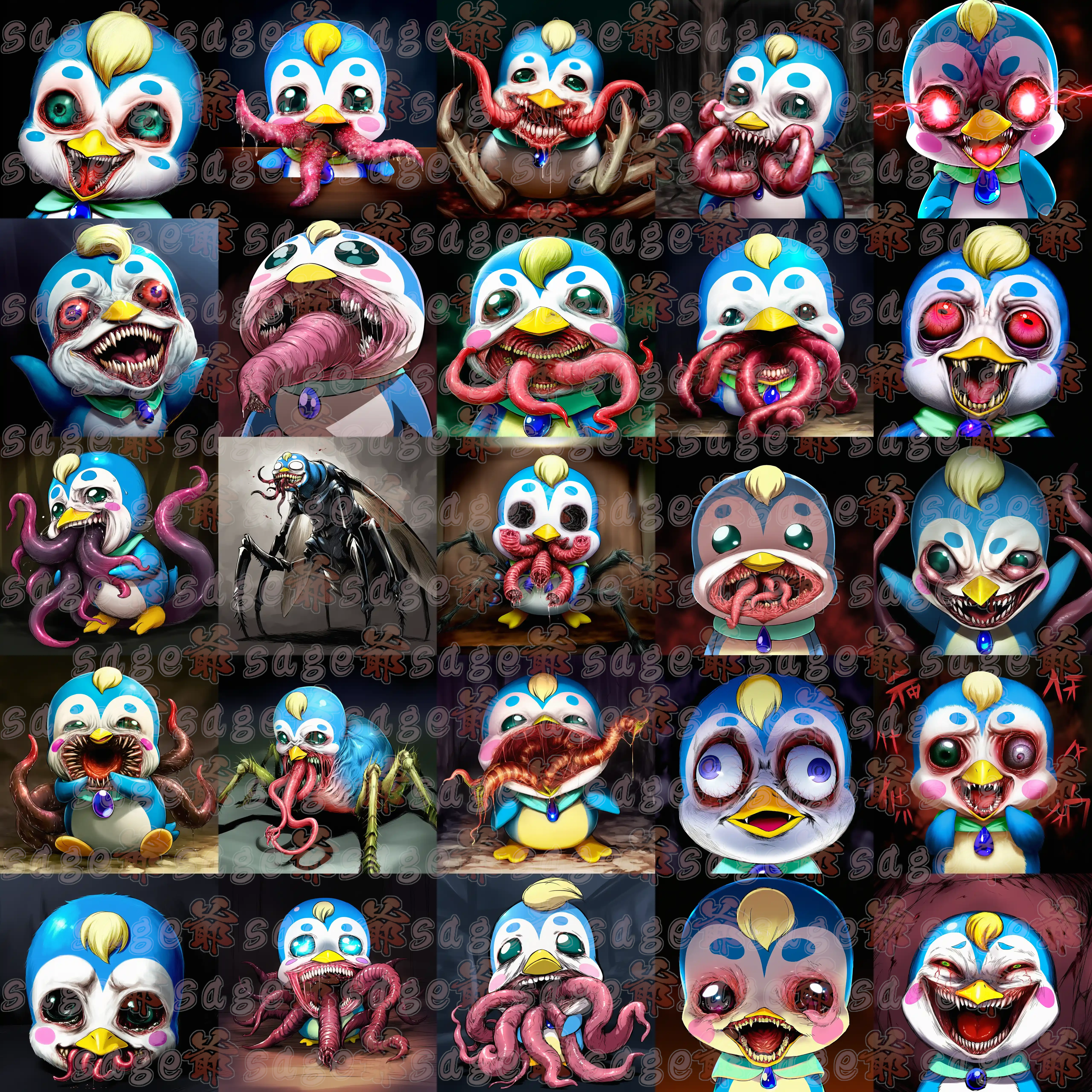 淫夢スレ住人が戯れに生成したAIによるホラーテイストなペギタン画像。