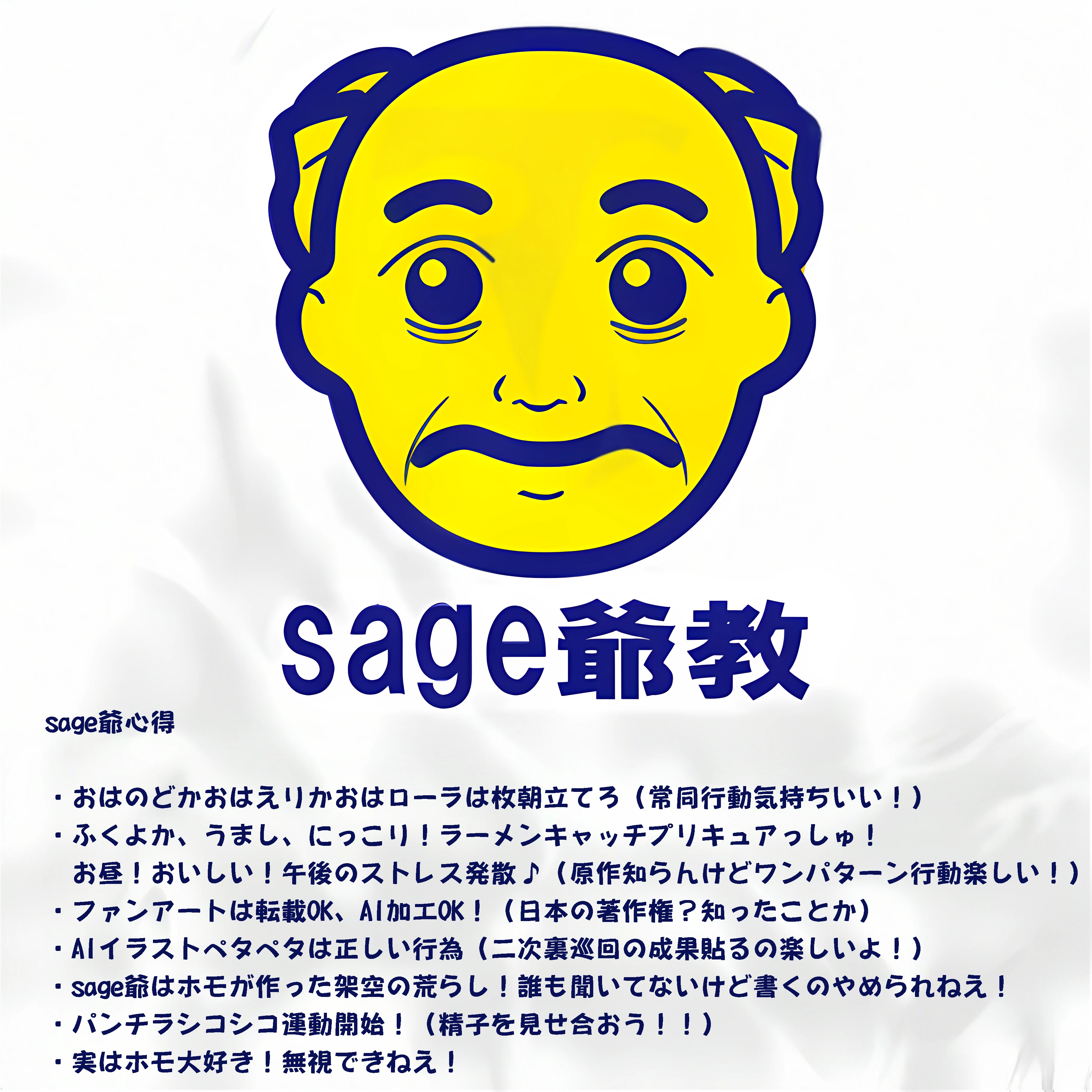 sage爺をおちょくる相手を「sage爺教」(sage爺による造語。sage爺語録ページ内「sage爺教」参照。)の信者と見立てて揶揄する目的の画像である。