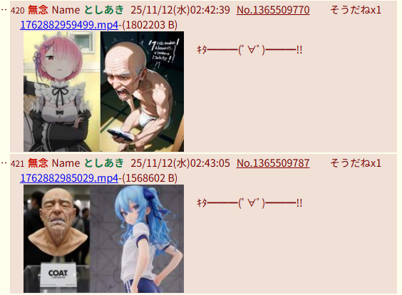 【画像:sora2で作成したと思しき星街す◯せいとのキショ動画でスレを立てる爺。sage爺には天誅するぞ…(断固たる意思)】
