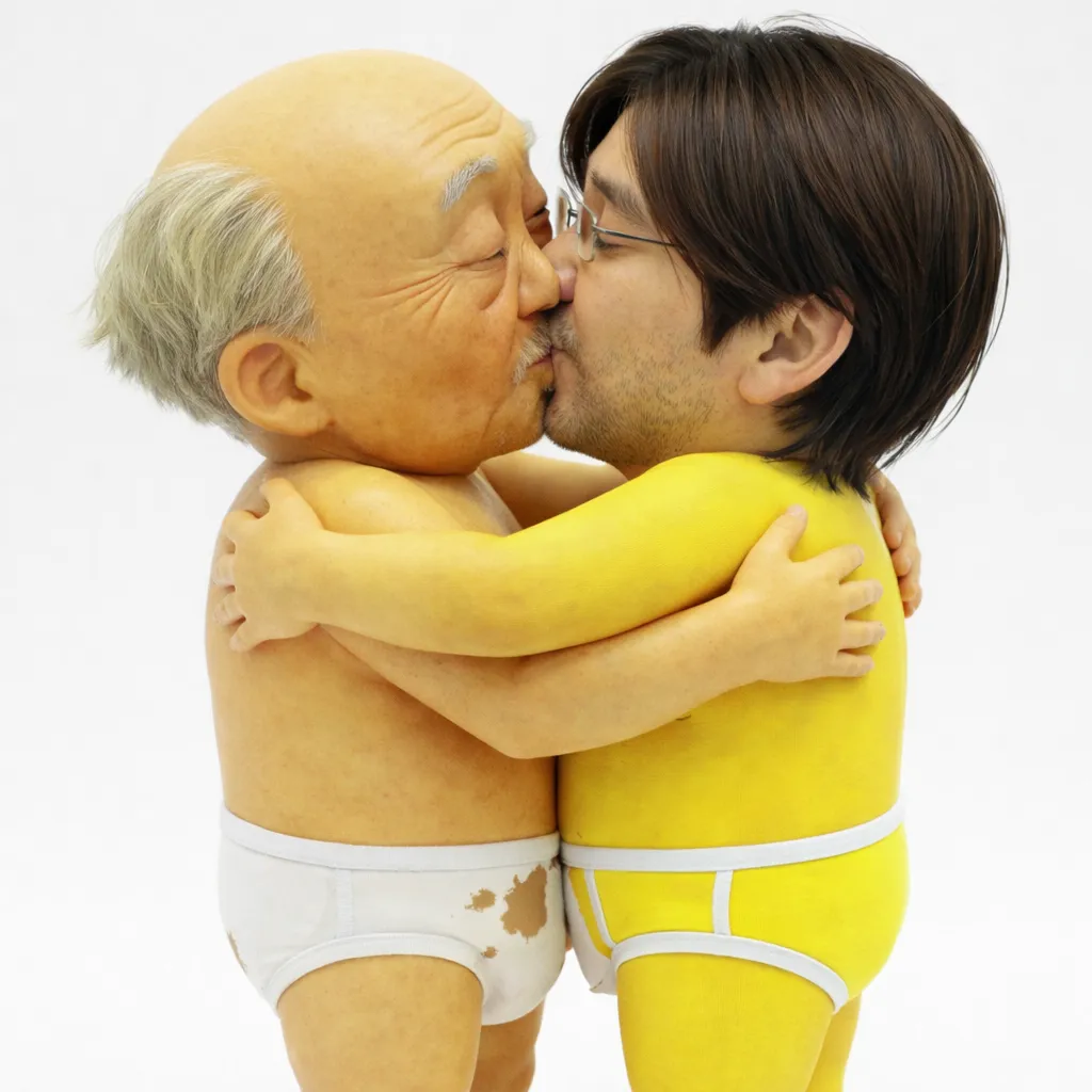 【画像:sage爺(真)とsage爺(アバター)はこうした関係であることは誰の目にも明らか。解釈一致で二人(一人)は幸せなキスをして終了。】