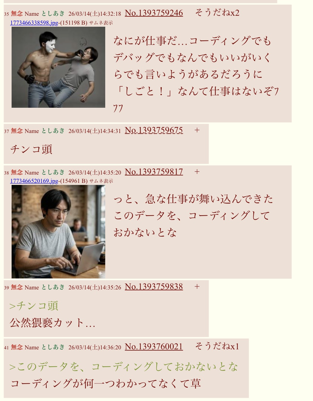 【画像:40代ごっこ。まともな人生を送ってこなかったsage爺にそんなごっこ遊びができるはずもなく浮きまくりdel入りまくり。】