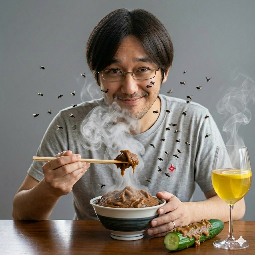 【画像:クソも味噌も一緒であろうsage爺の食生活の解釈として違和感はない改変。】