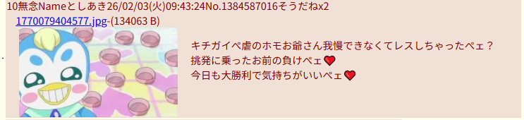 【画像:わざわざこんなスレを立てるあたり満たされていない実生活が見える見える…。このクソスレ立てる時間を労働に充てればアイス程度は食えたのでは?(キュアっと解決)】