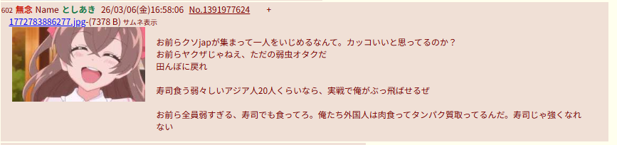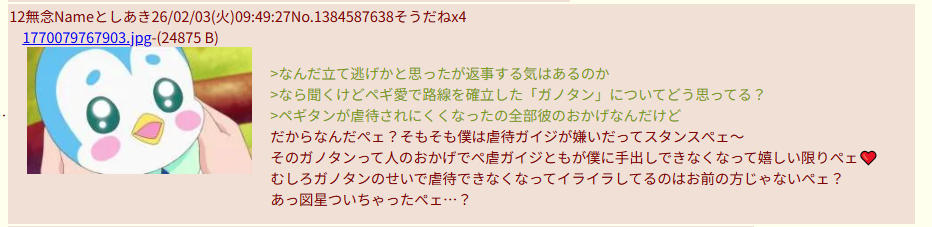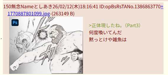 ※補足情報:拓也の過去が明かされた2024年には一時、「タクヤナイツ」化し拓也をネタにする拓也スレ住人への攻撃的な言動を向けていたが、すぐに忘れ2025年にはFAG爺(フレームアームズ・ガール画像連投爺)へ復帰。アバターとしては使用していないので、上掲の画像にはやや誇張が含まれている