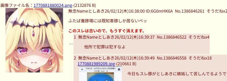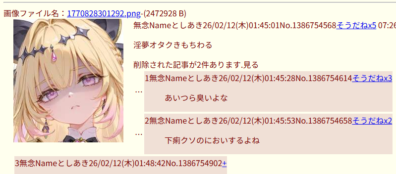 ●2026/01/25_今から咲良うたは以下の妨害者を排除することにした_脅迫・ID露出、イキリなど ●2026/01/24_きゅあまろくん誰にも注目されてなくてダサw ガノタンはお前だろ! ●2026/01/24_のどかスレを荒らし回った鹿児島人プリオタが逮捕されたようだ 今夜は気持ちがいい_誹謗中傷