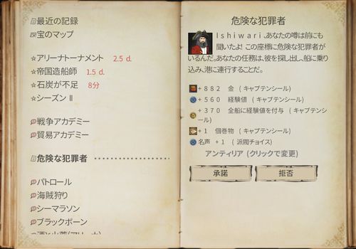 承諾時に交易品を受け取るので、指定の港に納品する