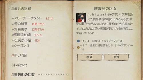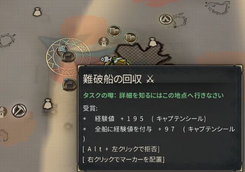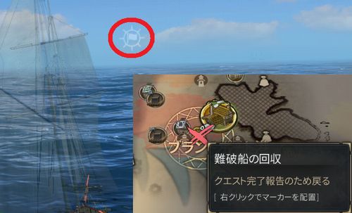 マップ(Mキー)で難破船の回収があるので現地へ行く