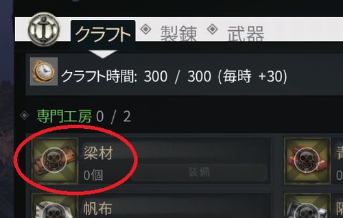 港の「工房」から「クラフト」で「梁(はり)」を10個クラフトする