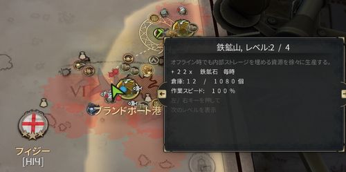 (資源地は施設を建設する事で、時間経過により鉄やラムなどの資源が手に入る)
