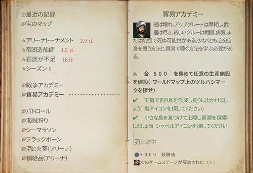 灯台から港に出入りできるスキル「護衛」ですが、バージョン違うのか私の画面は「エスコート」になっています。 私有島の説明で「人口」が「人工」になってる箇所があります。