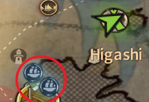 輸送中の遠征隊は、マップで船のアイコン(青色)で表示される
